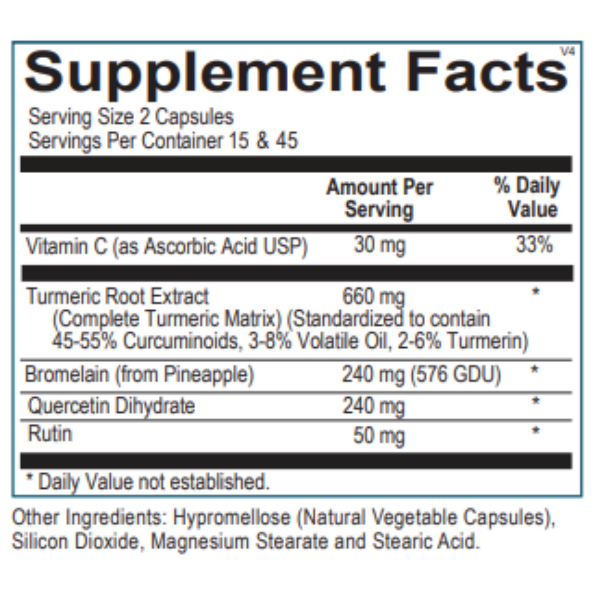 Turmeric Matrix combines Turmeric Complete, quercetin, rutin and bromelain for enhanced joint function, and to maintain normal inflammatory balance systemically.